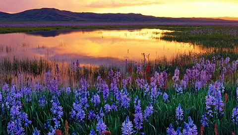 Her mighty lakes, like oceans of liquid silver; her mountains with their right aerial tints; her valleys, teeming with wild fertility; her tremendous cataracts, thundering in their solitudes; her boundless plains, waving with spontaneous verdure; her brought deep rivers, rolling in solemn silence to the ocean; her trackless forests, where vegetation puts forth all its magnificence; her skies, kindling waves in the magic of the summer clouds and glorious sunshine; — no, never need an American look beyond his own country for the sublime and beautiful of natural scenery.